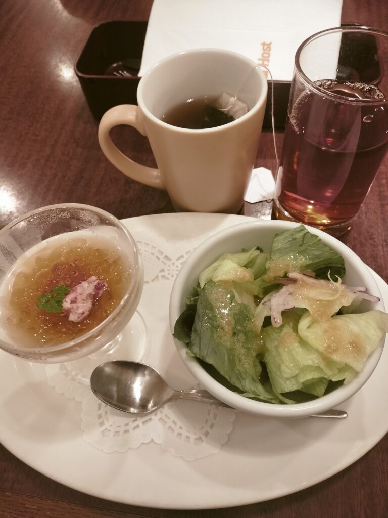 ここは、ファミレスでもコース仕立てにできるセットが充実していて、ついついコース風にしてしまいます。総額7000円くらいになってしまったんですが、20%割引で、5600円くらいの清算でした。大満足です。